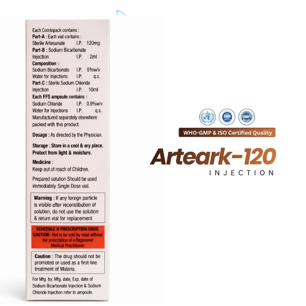Product Composition: Artesunate 120mg + Sodium Bicarbonate 1mg + Sodium chloride 5mg Injection (UNDER DPCO)