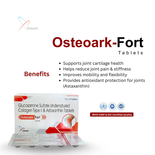 Product Composition: Glucosamine Sulfate Potassium Chloride 1500mg Undenatued Collagen TYPE II 40 mg + Astaxanthin 4mg