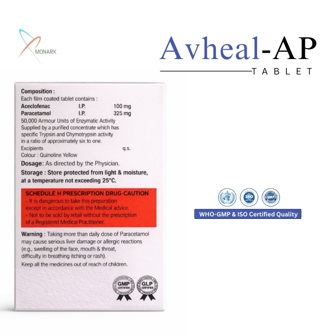 Musculoskeletal Pain: Whether from an injury, strain, or chronic condition like osteoarthritis or rheumatoid arthritis, this tablet provides effective relief. Post-Operative Recovery: After surgery, particularly soft tissue surgeries, Trypsin and Chymotrypsin help reduce swelling and promote faster recovery, while Paracetamol and Aceclofenac control pain. Joint and Bone Disorders: Aceclofenac is specifically beneficial for conditions like osteoarthritis, where inflammation and pain in the joints significantly impact daily activities. Sprains, Strains, and Sports Injuries: This tablet can be used to manage pain and inflammation in the case of sports injuries, sprains, and strains.