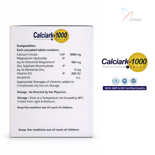 Product Composition: Calcium Citrate 1000mg + Magnesium 100mg + Zinc 4mg + Vitamin D3 200 i.u. Tablet