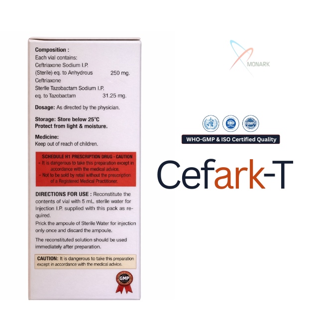 Product Composition: Ceftriaxone 250mg + Tazobactam 31.25 Injection