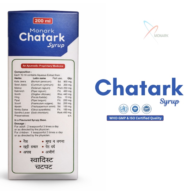 Monark Biocare has been a trusted name in the pharmaceutical sector, delivering high-quality, safe, and affordable medicines. With a commitment to innovation, research, and patient care, we ensure that every product meets the highest standards of safety and efficacy. CHATARK SYRUP reflects our dedication to providing effective, natural solutions for everyday health problems.