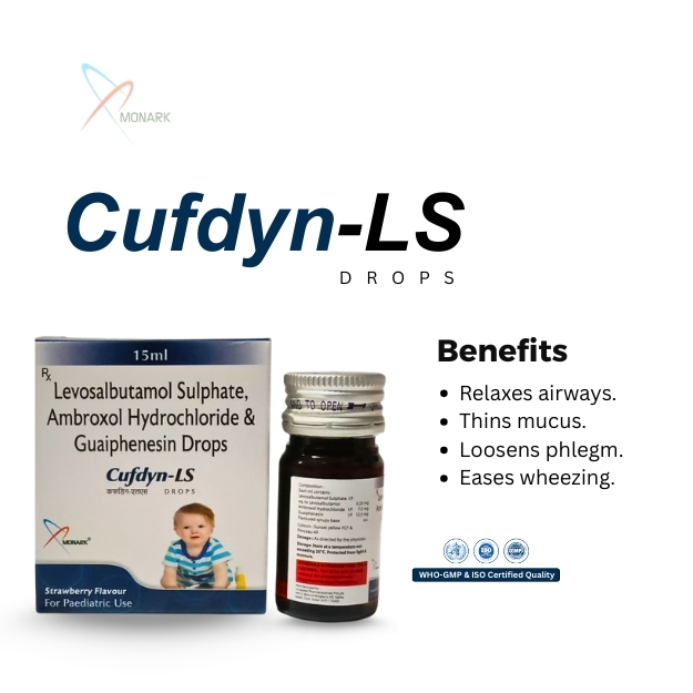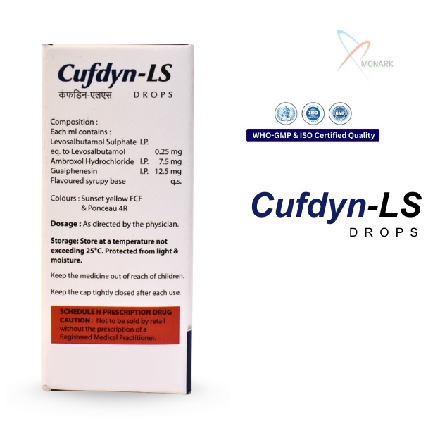 Product Composition: Levosalbutamol Sulphate 0.25 mg+ Ambroxol Hydrochloride I.P 7.5 mg + Guaiphnesin 12.5mg Syrup With Monocarton