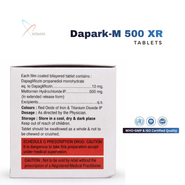 Product Composition: Dapagliflozin 10mg + Metformin Hydrochloride (ER) 500MG Tables