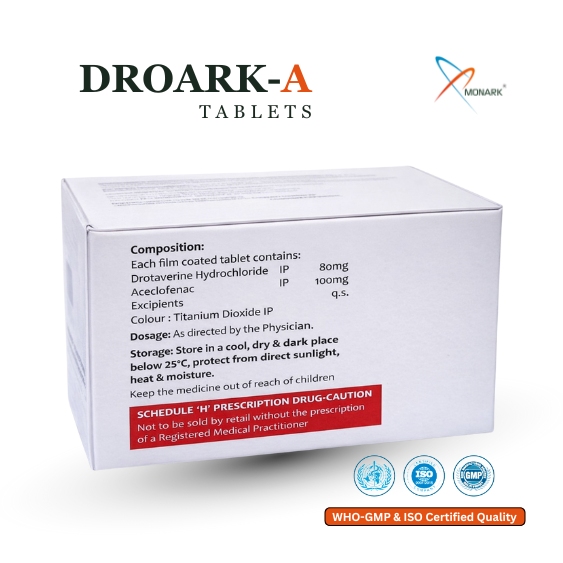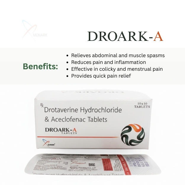 DROARK-A stands out as an effective and convenient medication for managing conditions involving both smooth muscle spasms and pain. By combining the muscle-relaxing power of Drotaverine with the anti-inflammatory and pain-relieving properties of Aceclofenac, it offers comprehensive relief in a single tablet.