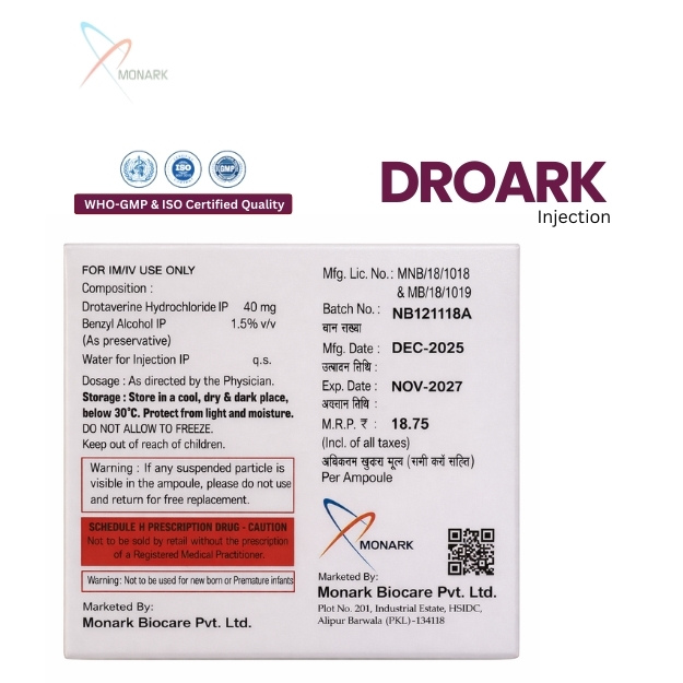 Product Composition: Drotaverine HCI 20mg Injection (Special Blister Pack)