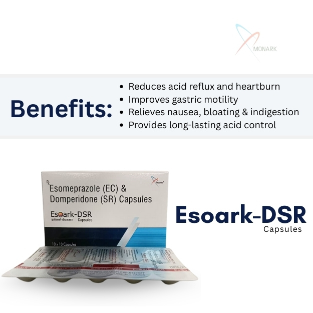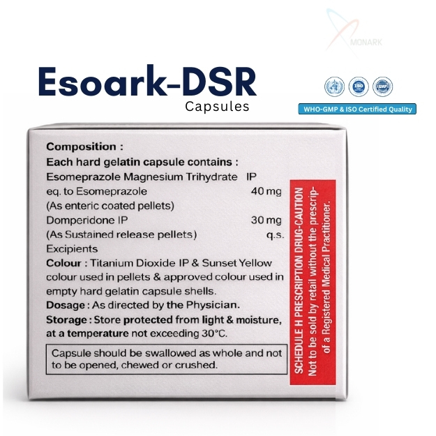 Monark Biocare is a reputed pharmaceutical company that emphasizes quality, affordability, and innovation. Their Esomeprazole Domperidone (SR) Capsules are: