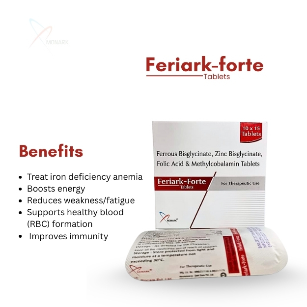 Product Composition: Ferrous Bisglycinate 60 mg + Zinc Bisglycinate 15mg + Folic acid 1mg + Methylcobalamin 500mcg Tablets