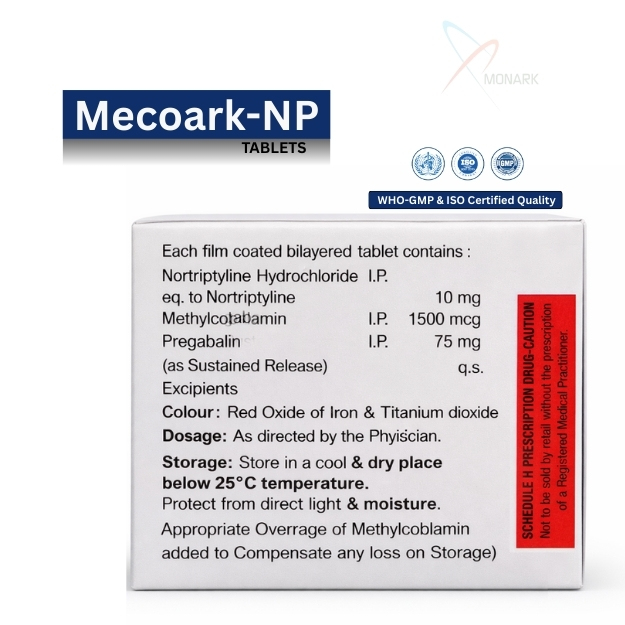 Product Composition: Pregabalin(sr) 75 mg+ Nortriptyline 10 mg + Methylcobalamin 1500 mcg Tablets
