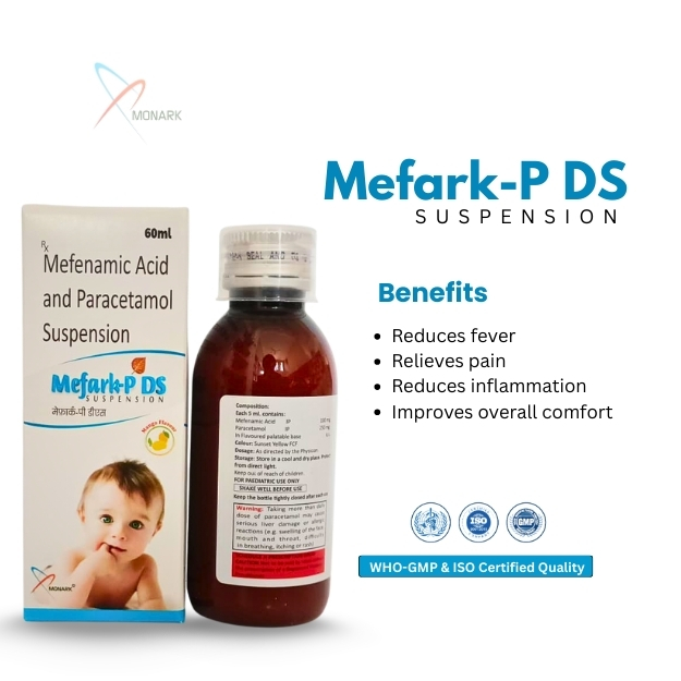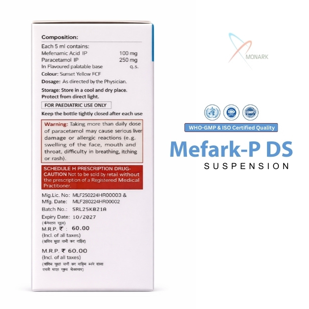 Product Composition: Mefenamic Acid 100mg + Paracetamol 250mg Suspension With Monocartoon