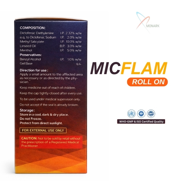 Product Composition: Diclofenac + Diethylamidne Menthol , MethylSalicylate + Linseed oil Gel