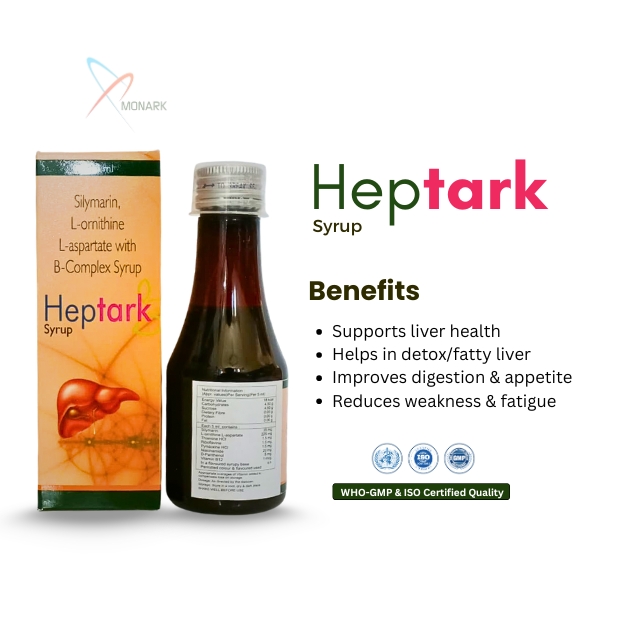 HEPTARK-100ml Syrup is a premium nutritional supplement formulated to support liver health, improve metabolism, and restore essential B-complex vitamins in the body. Manufactured by Monark Biocare, it combines the hepatoprotective benefits of Silymarin with a potent blend of vitamins and nutrients that play a key role in overall well-being.
